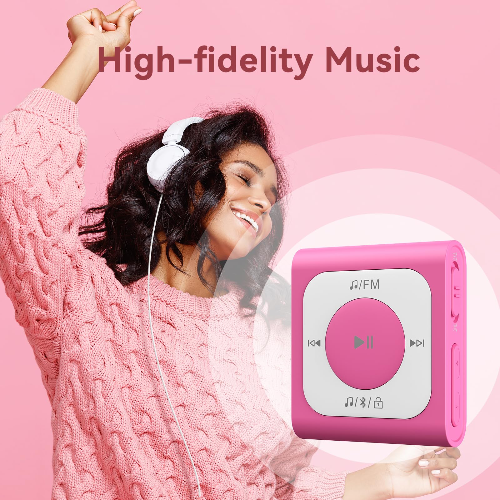 AGPTEK Mini Clip MP3-speler 64 GB - Lichtgewicht Muziekspeler Met Clip En Hoofdtelefoon Voor Sport